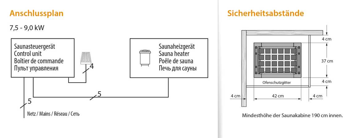 For sauna cabin size (7,5 / 9 / 12 / 15 kW) | 8 - 12 m³ / 10 - 14 m³ / 14 - 18 m³ / 18 - 25 m³ |