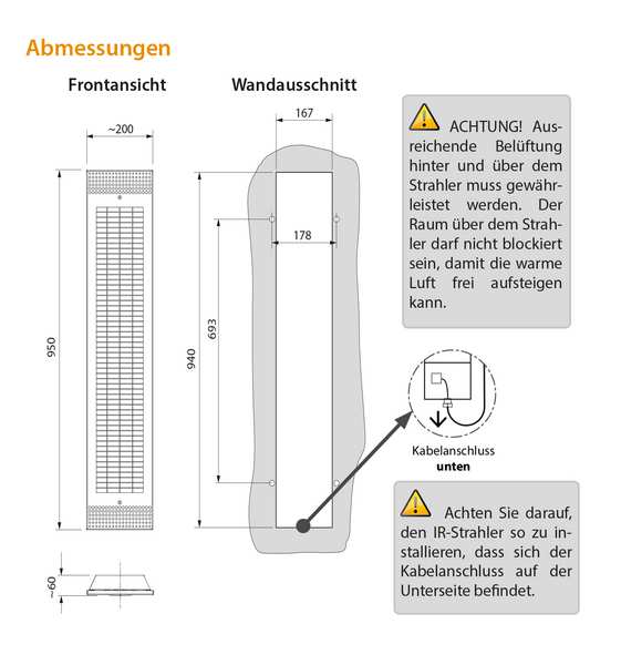 Mesure, H/L/P | 950 x 200 x 60 mm |