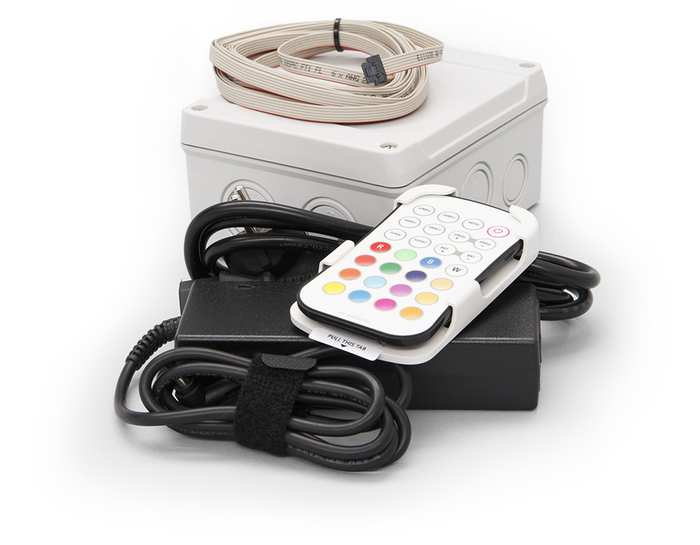 • Erhältlich in Warmweiß (3000 K) und RGB. Dimmbar.