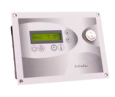 Mit alphanumerischem LCD-Display (Uhrzeit, Funktionen, Störmeldungen). Temperaturregelbereich 30 °C - 70 °C. Heizzeiteinstellung 1 - 99 min. Lichtschalter für Kabinenlicht. Sehr einfache Bedienung. Mit Ein/Aus-Schalter. Einbaumontage.