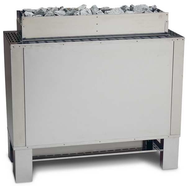 Saunaofen für den finnischen Saunabetrieb in gewerbliche Kabinen bis zu 75 m³, im klassischen Design mit sehr stabiler, verstärkter Konstruktion in zwei Baugrößen. Komplett aus Edelstahl mit robuster 3-Mantel-Technik. Besonders geeignet für den intensiven gewerblichen Einsatz.