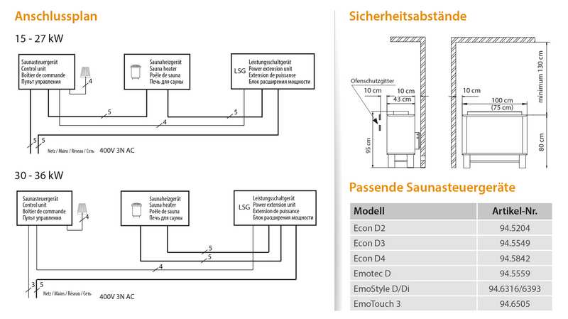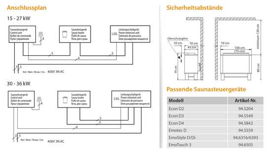 - Standofen für große Saunakabinen bis ca. 75 m³.