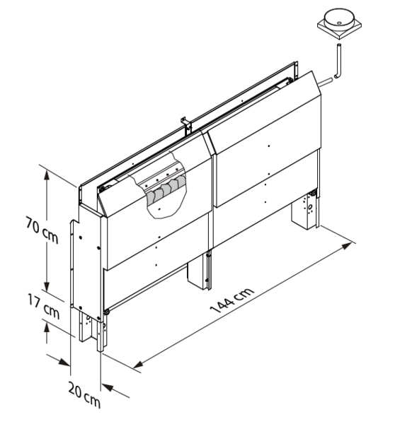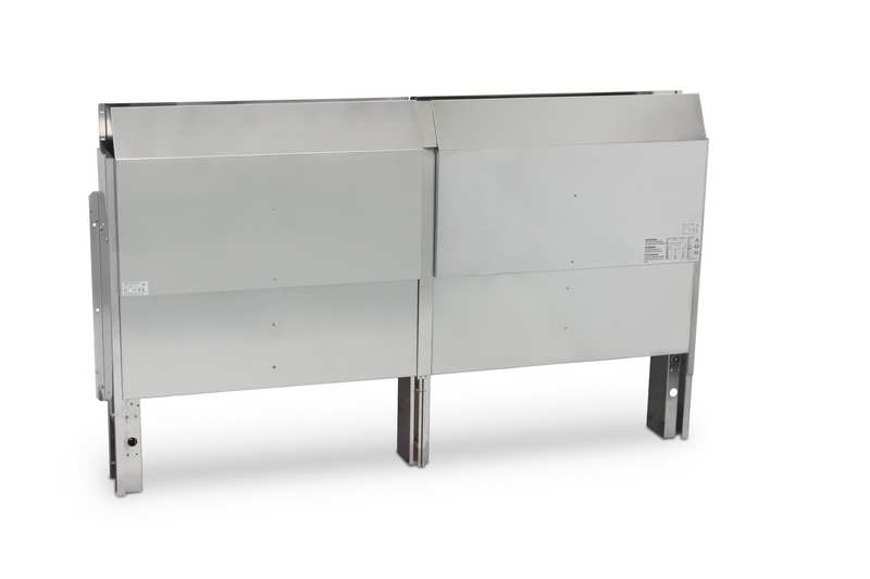 Spezielle, extra flache Konstruktion für unsichtbare Installation hinter einer Trennwand. Nur 22 cm Platzbedarf bis zur Trennwand!