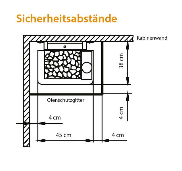 - Preiswerter Saunaofen mit seitlich eingebautem Verdampfer.