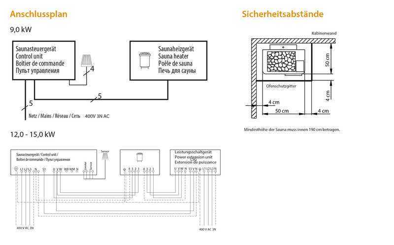 Mindestmaß der Be- und Entlüftung (9,0 / 12,0 / 15,0 kW) | 35 x 6 cm / 35 x 7 cm / 35 x 9 cm |
