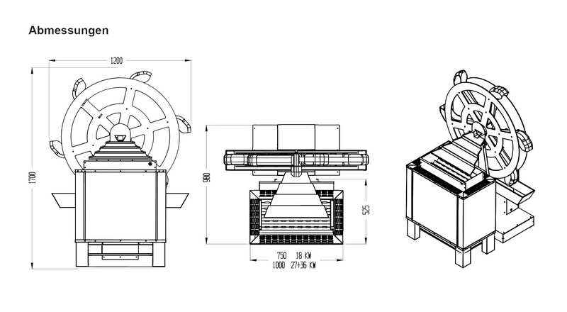 - Größe 1: 18 kW, Steinkorb für ~30 kg Steine