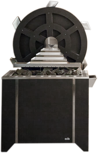 Der Mühlensauna-Ofen sorgt für Abwechslung und „Action“ in Ihrer Saunaanlage. Das einzigartige Mühlenrad wird hier mit dem EOS Goliath Saunaofen kombiniert.