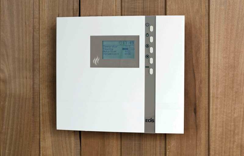 Steuergerät für die finnische (trockene) Sauna und Sauna mit Feuchtebetrieb mit mehrsprachiger Menüführung und umfangreichen, innovativen Funktionen. Besonders geeignet für moderne gewerbliche Saunaanlagen.