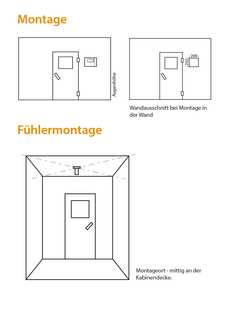 Flaches Gehäuse zur Wandmontage, teilversenkte Montage möglich. Temperaturfühler mit 2 m Kabel im Lieferumfang enthalten.