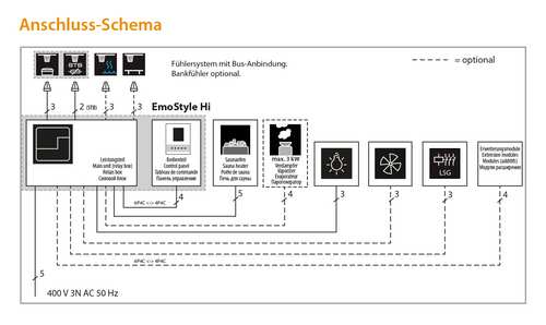 Wie EOS EmoStyle D/H, jedoch mit Bedienteil zur Unterputzmontage in der Saunakabine.