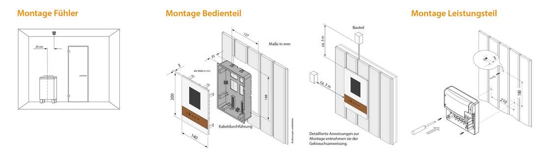 - Bedienteil geeignet für Montage in der Saunakabine.