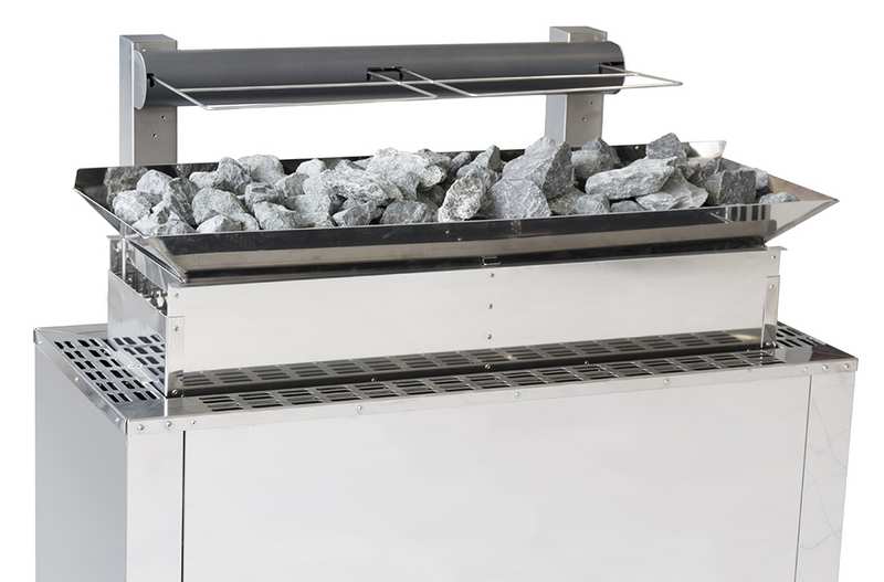 Wandmontage direkt über dem Ofen. Dank fünf verschiedener Größen passend zu allen EOS Saunaöfen. Einfach zu montieren und sehr zuverlässig. Für bestimmte Saunaöfen kann das System mit einem zusätzlichen Rahmen auch direkt am Ofen montiert werden.