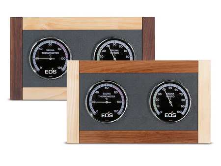 Ø 100 mm Thermometer und Hygrometer, Messbereich 0 - 120 °C bzw. 0 - 100 % rel, Luftfeuchte. Maße 340 x 195 mm. Wandmontage.